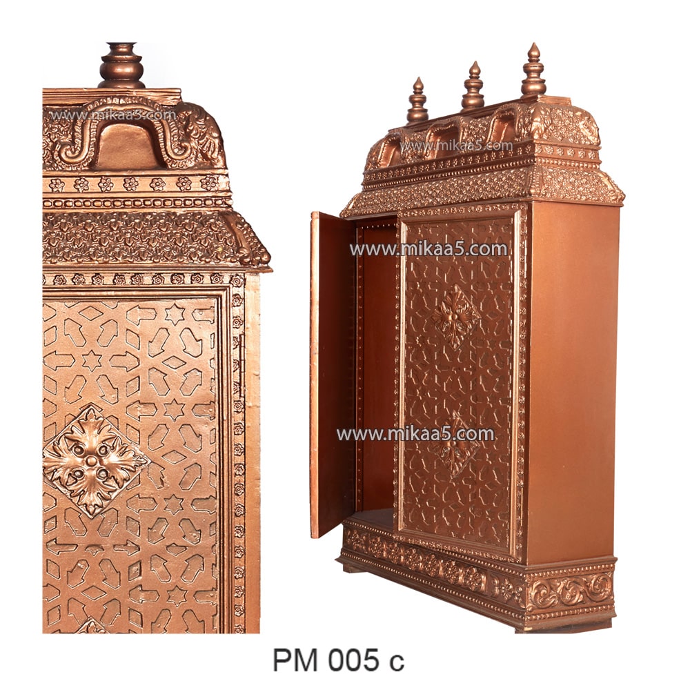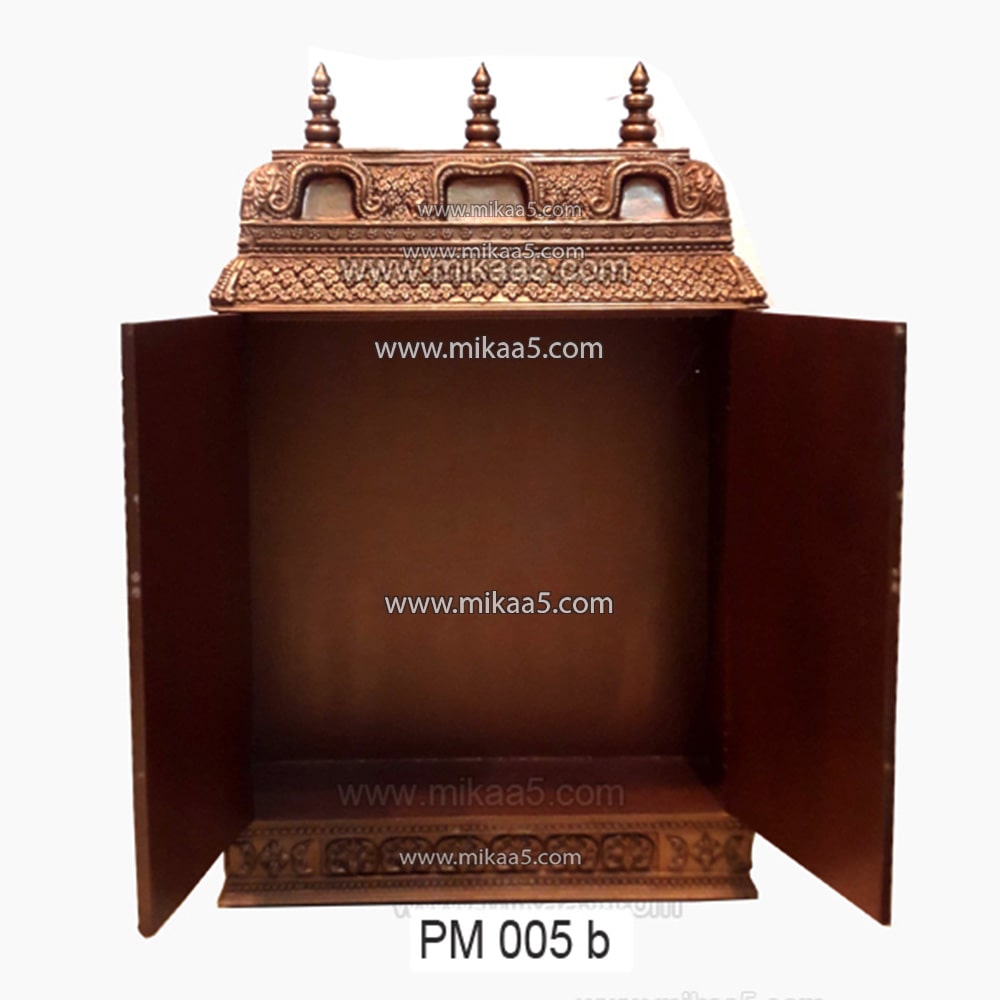 Elevate your home with the Contemporary Pooja Mandapam, a sleek anti-copper temple blending tradition and modern design. Perfect for elegant interiors.