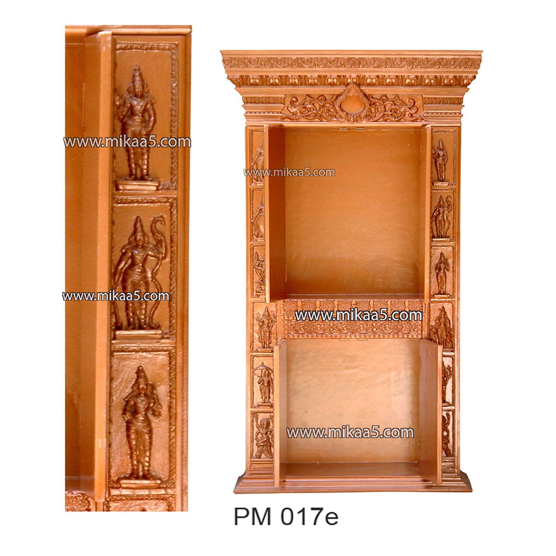 Celebrate divine craftsmanship with the Dasavataram Pooja Mandapam, meticulously handcrafted in a radiant copper colour finish. Standing 84 inches high, 48 inches deep, and 18 inches wide, this 240 kg masterpiece features detailed carvings of the ten avatars of Lord Vishnu, symbolizing protection and balance.