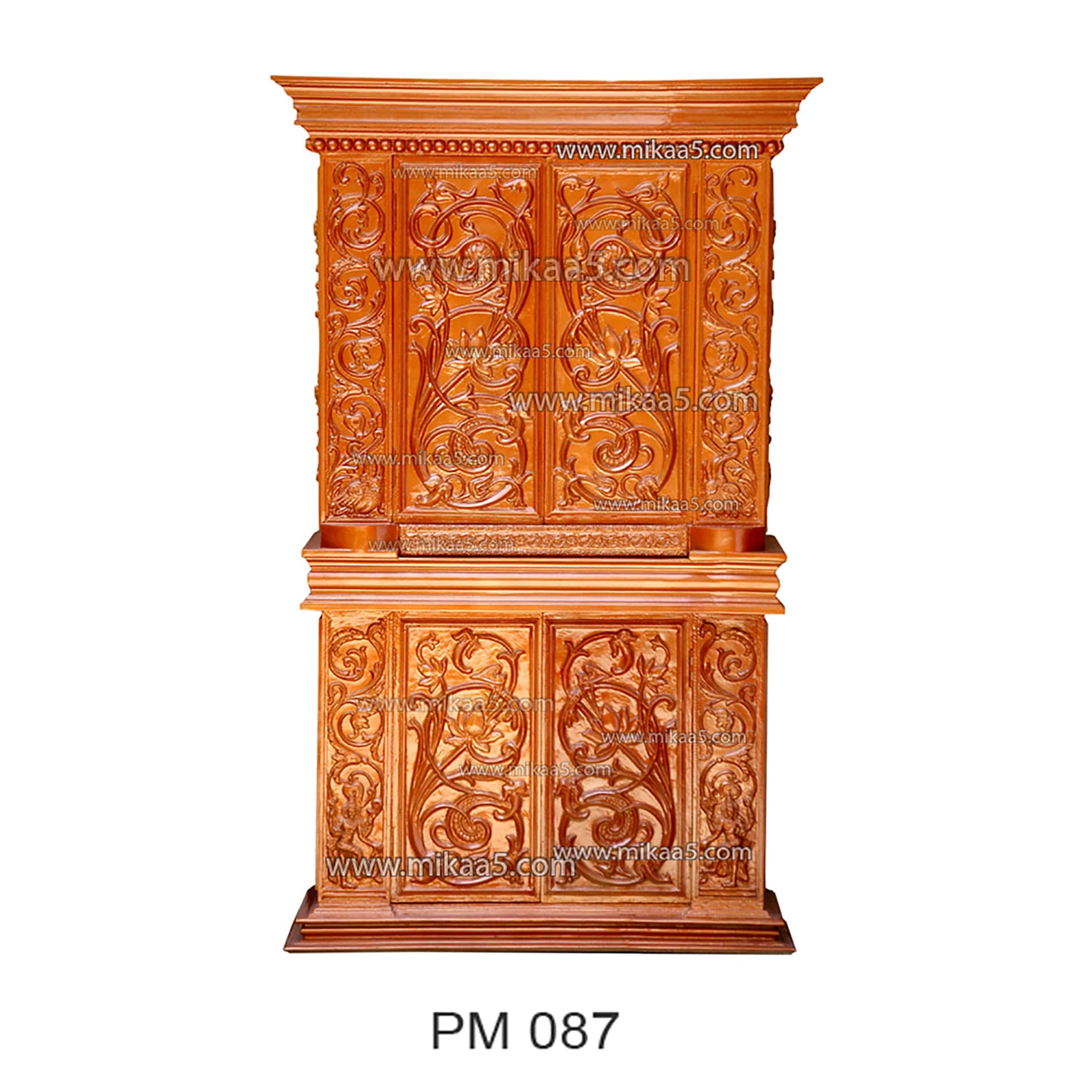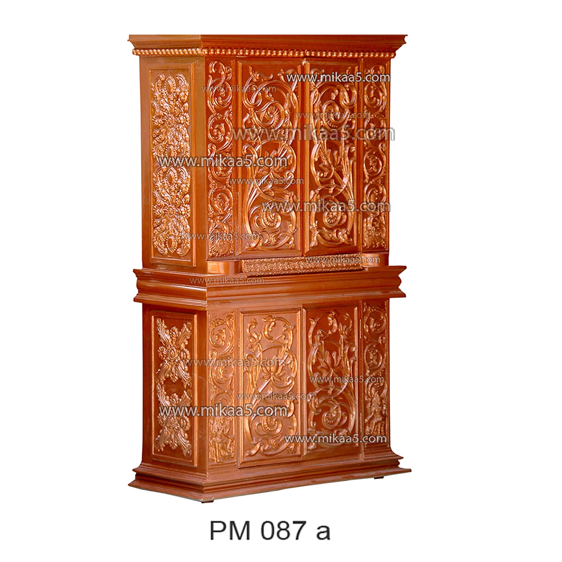 Floral Design Pooja Mandapam – Copper Colour Composite Wood with Floral Patterns