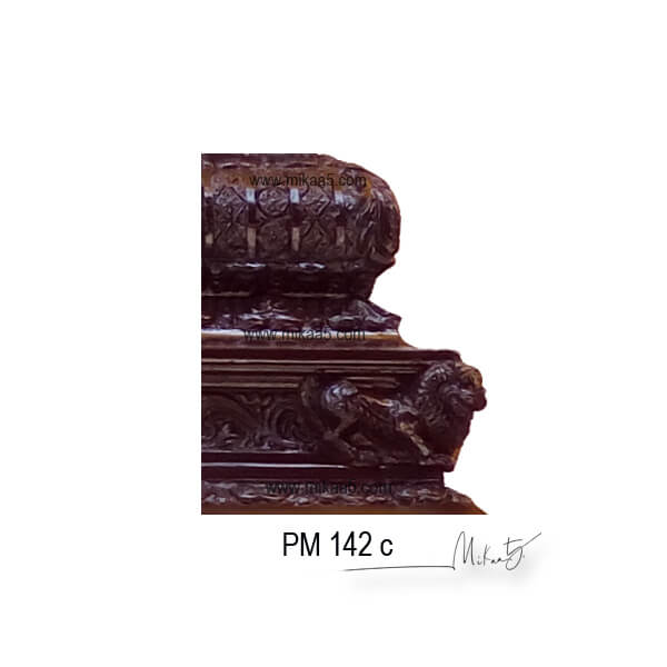 Handcrafted Heritage Pooja Mandapam in composite wood with Yazhi pillars. Perfect for pooja rooms or meditation spaces. Price: ₹105,000.