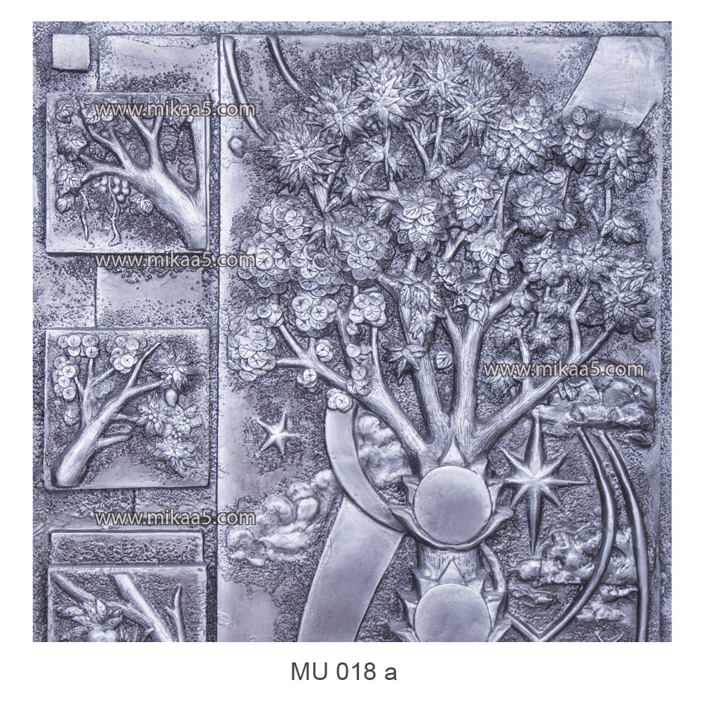Handcrafted Karpaga Virucham Tree Wall Mural in white metal antique finish, symbolizing abundance, prosperity, and spiritual elegance for home or office decor