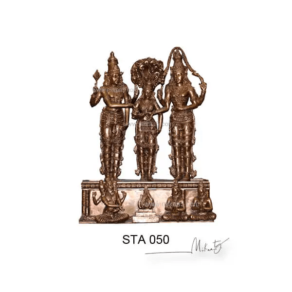 Celebrate divine artistry with the Meenakshi Kalyanam Statue, a masterpiece handcrafted in radiant brass by skilled artisans. Every curve and contour narrates the sacred union of Goddess Meenakshi and Lord Sundareswarar, symbolizing harmony, love, and prosperity. Designed with precision and devotion, this traditional statue art embodies timeless temple heritage, making it a centerpiece for both spiritual and aesthetic enrichment.