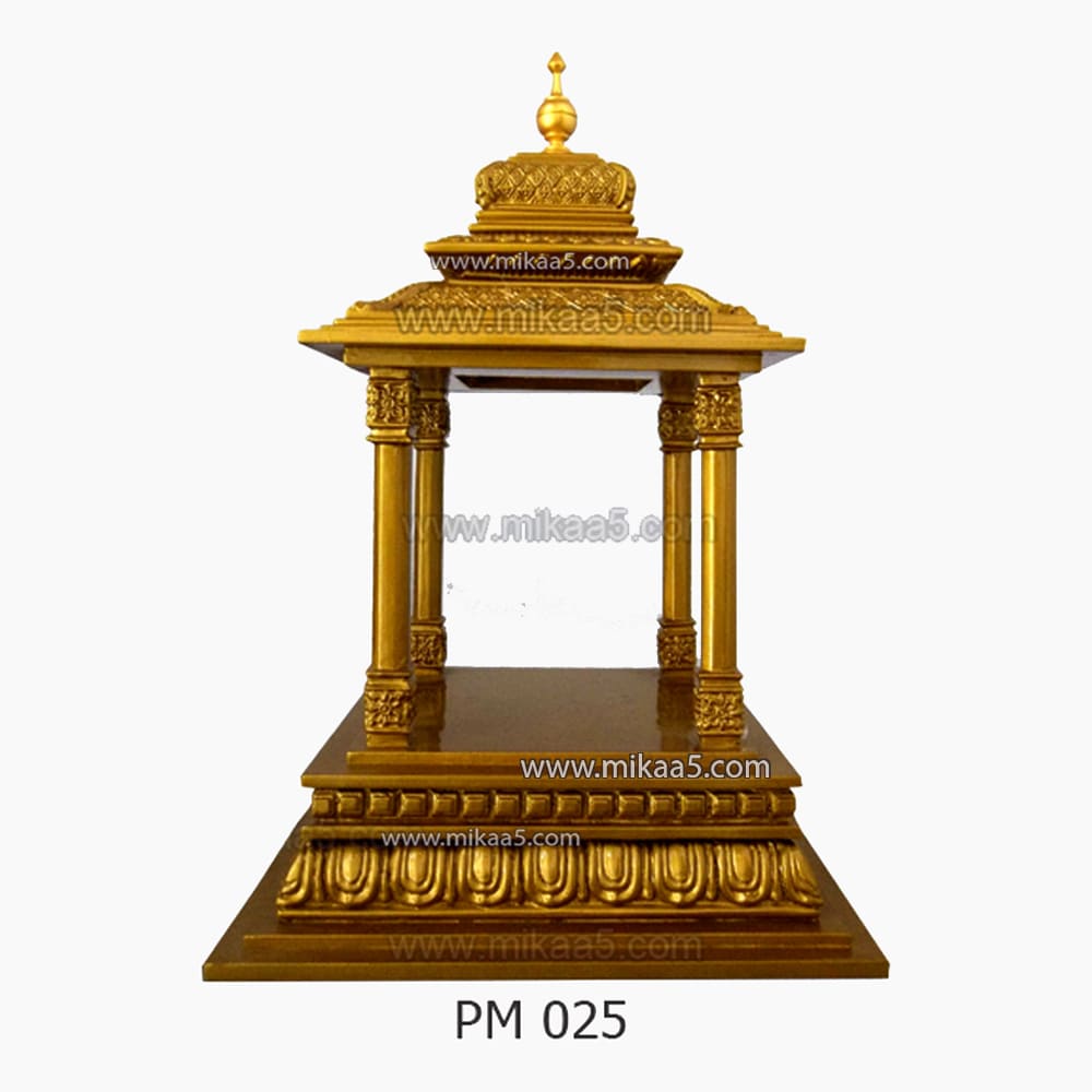Enhance your pooja space with this compact and beautifully crafted gold-coloured wooden mandapam. Designed to fit smaller areas while maintaining elegance, it adds a graceful spiritual presence without occupying much space.