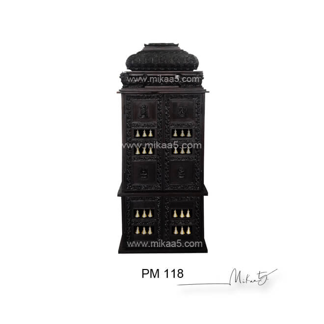 Elevate your spiritual ambiance with our Traditional Mandapam, exquisitely handcrafted in a rich dark walnut finish.