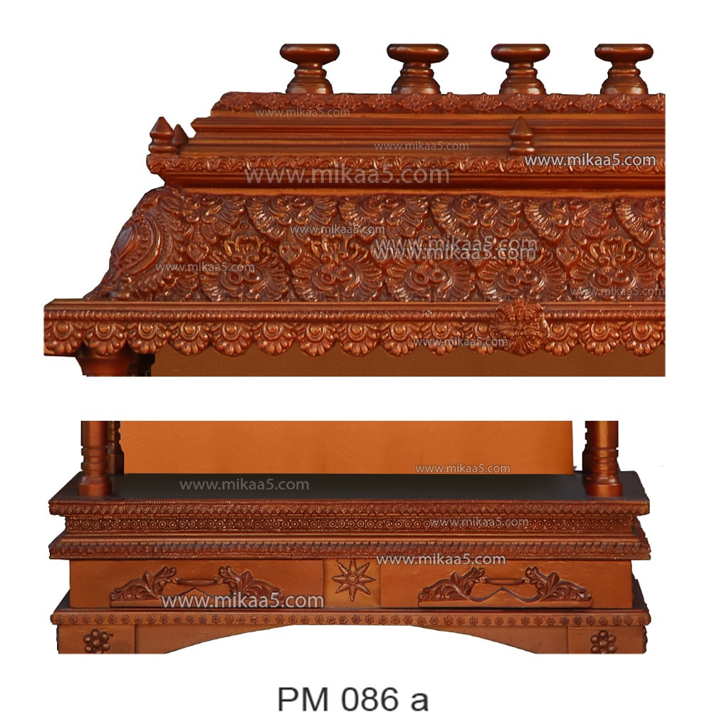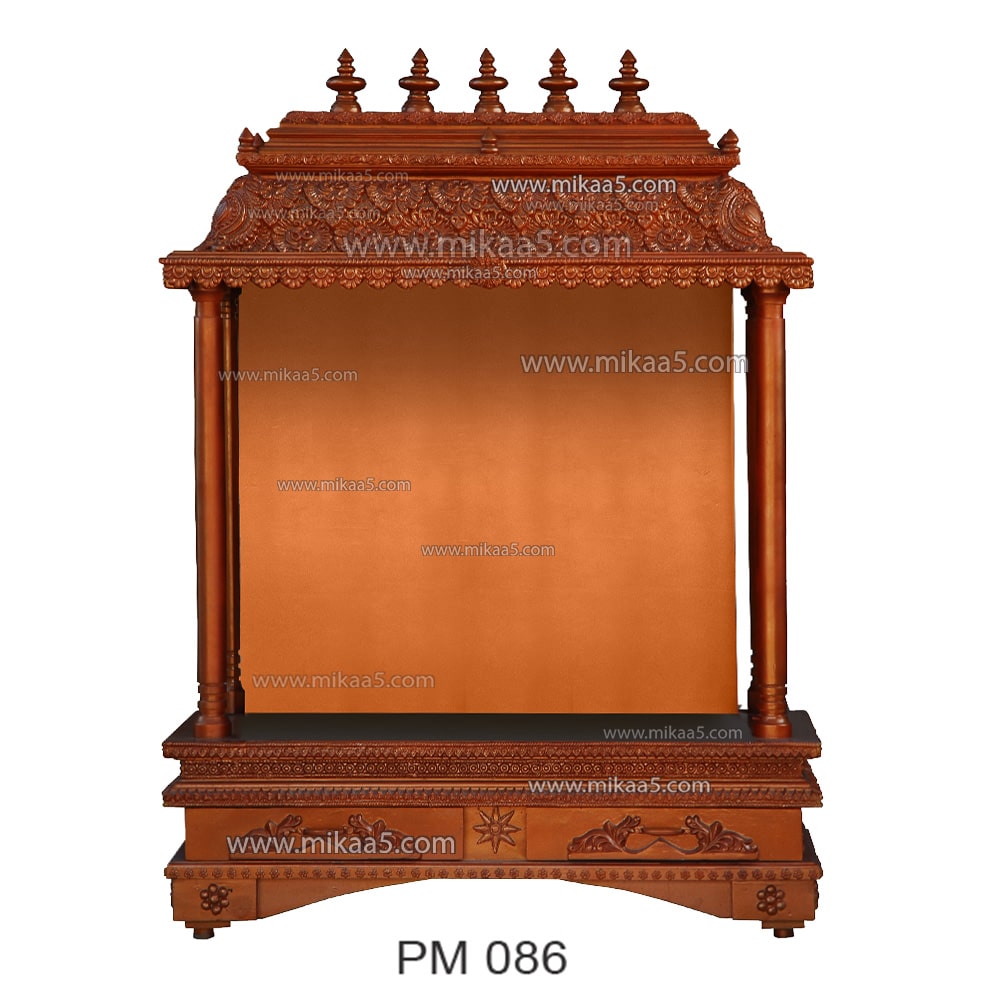 Traditional Pooja Mandapam – Copper Finish Classic Wooden Temple Design