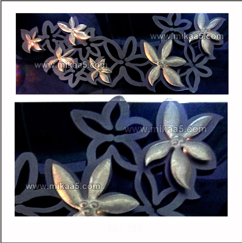 - Design Concept: Contemporary abstract floral metal design with textured detailing.