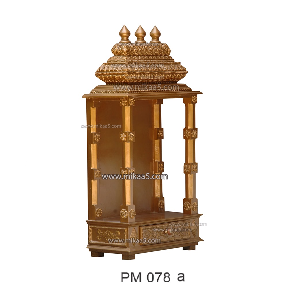 Wooden Pooja Mandir – Gold Colour Temple with 3 Kalasams