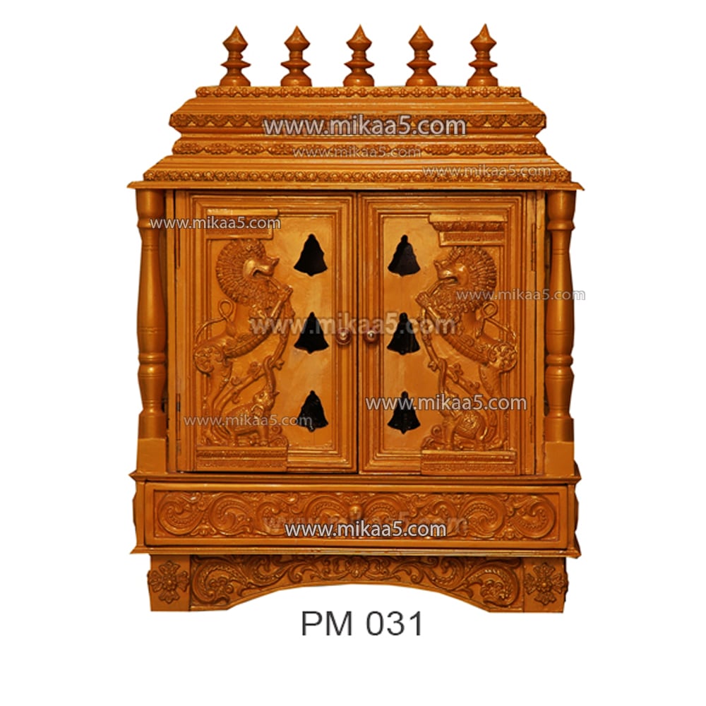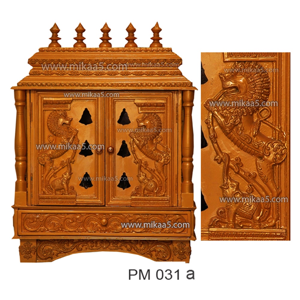 Yazhi Door Pooja Mandapam – Yellowish Brown with 5 Kalasams & Drawer